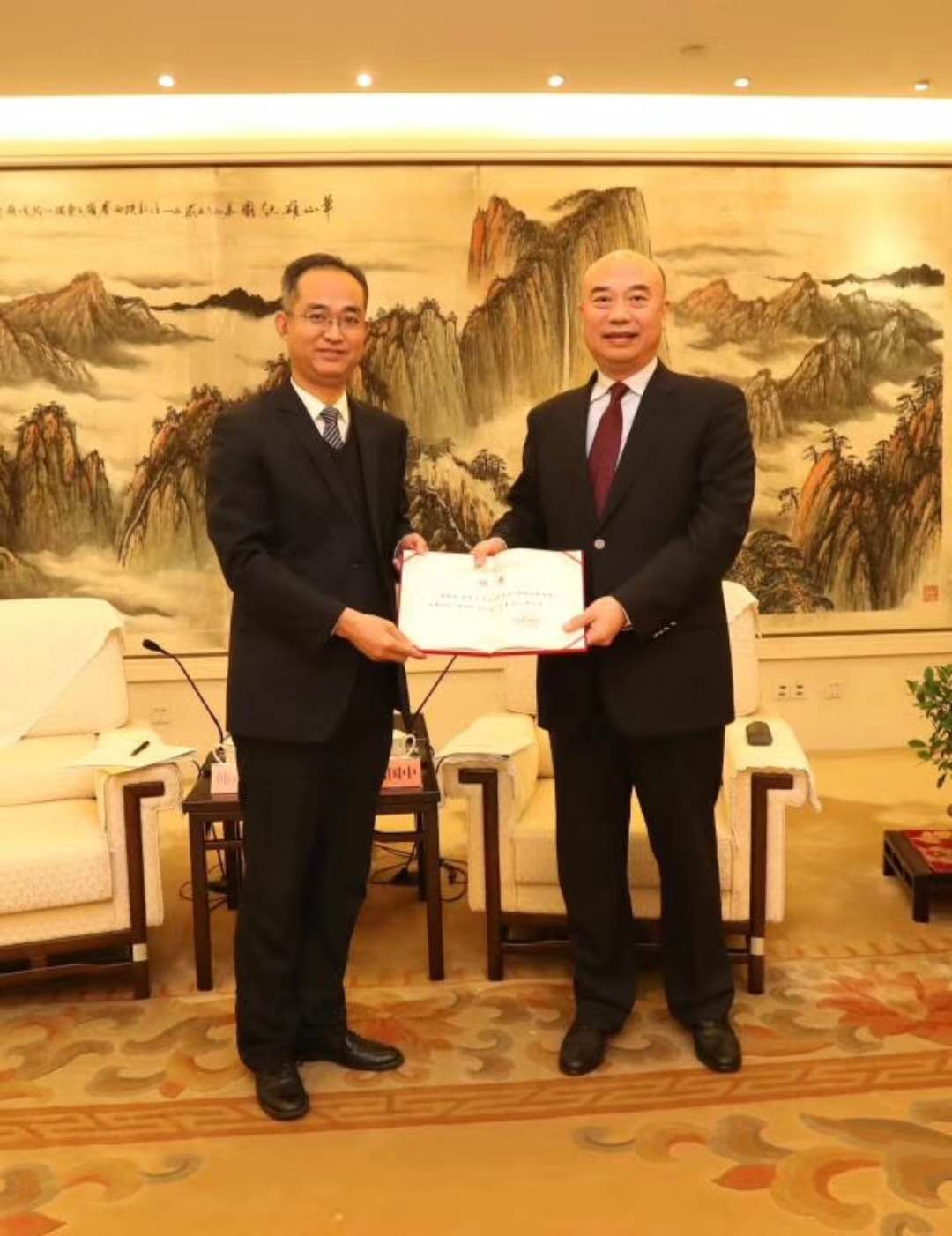 (陕西省省长刘国中为刘丹冰教授、88级校友王浩公颁发聘书)