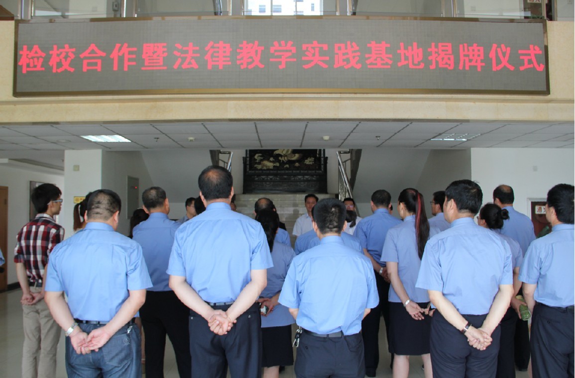 6月27日,我校法律教学实践基地在户县人民检察院挂牌成立。西安市人民检察院副检察长廖平、户县县委常委、政法委书记邓晓宇、户县人民检察院检察长苑伟、我院院长刘丹冰、副院长王宝宏、工会主席王鸿貌及我院师生代表、户县人民检察院工作人员一同参加了挂牌仪式。