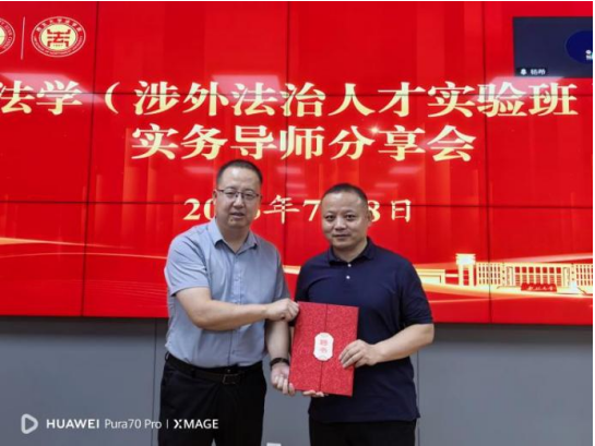 2025年7月8日下午,我院在西学楼0904室举办法学(涉外法治人才实验班)实务导师分享会。本次会议邀请中国电建集团西北勘测设计研究院有限公司总法顾问、首席合规官魏军,西安仲裁委员会仲裁研究中心主任、陕西自贸区仲裁院院长刘红,陕西稼轩律师事务所合伙人、涉外法律专业委员会主任任海,法国Mayer Brown律师事务所顾问律师李桂梅进行分享。242net必赢官方党委副书记、院长王思锋,副院长邱洪华,副院长崔玲玲,242net必赢办公室主任王哲,242net必赢教师、教学委员会秘书苟震,242net必赢教师、法学(涉外法治人才实验班)班主任杨希,以及2024级法学(涉外法治人才实验班)全体同学参与本次会议。会议由崔玲玲副院长主持。